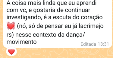 Bióloga graduada por la Universidad de Brasilia (UnB), instructora de Yoga, bailarina, terapeuta ayurvédica, madre, terapeuta corporal, mujer, investigadora corporal y espiritual, docente, multiartista, creadora y provocadora de las sesiones e investigaciones del Laboratorio Pélvico. Es bióloga, egresada de la UnB, con casi 2 años de experiencia en Artes Escénicas. Profundizó en anatomía y fisiología, especialmente en neurofisiología y estudios con endocannabinoides cuando ni siquiera se había oído hablar de esto en Brasil (2009/2010). Estudió en el c.e.m (centro de estudios del movimiento) de Lisboa, participó en algunas ocupaciones y muchas acciones artísticas en Barcelona, España.